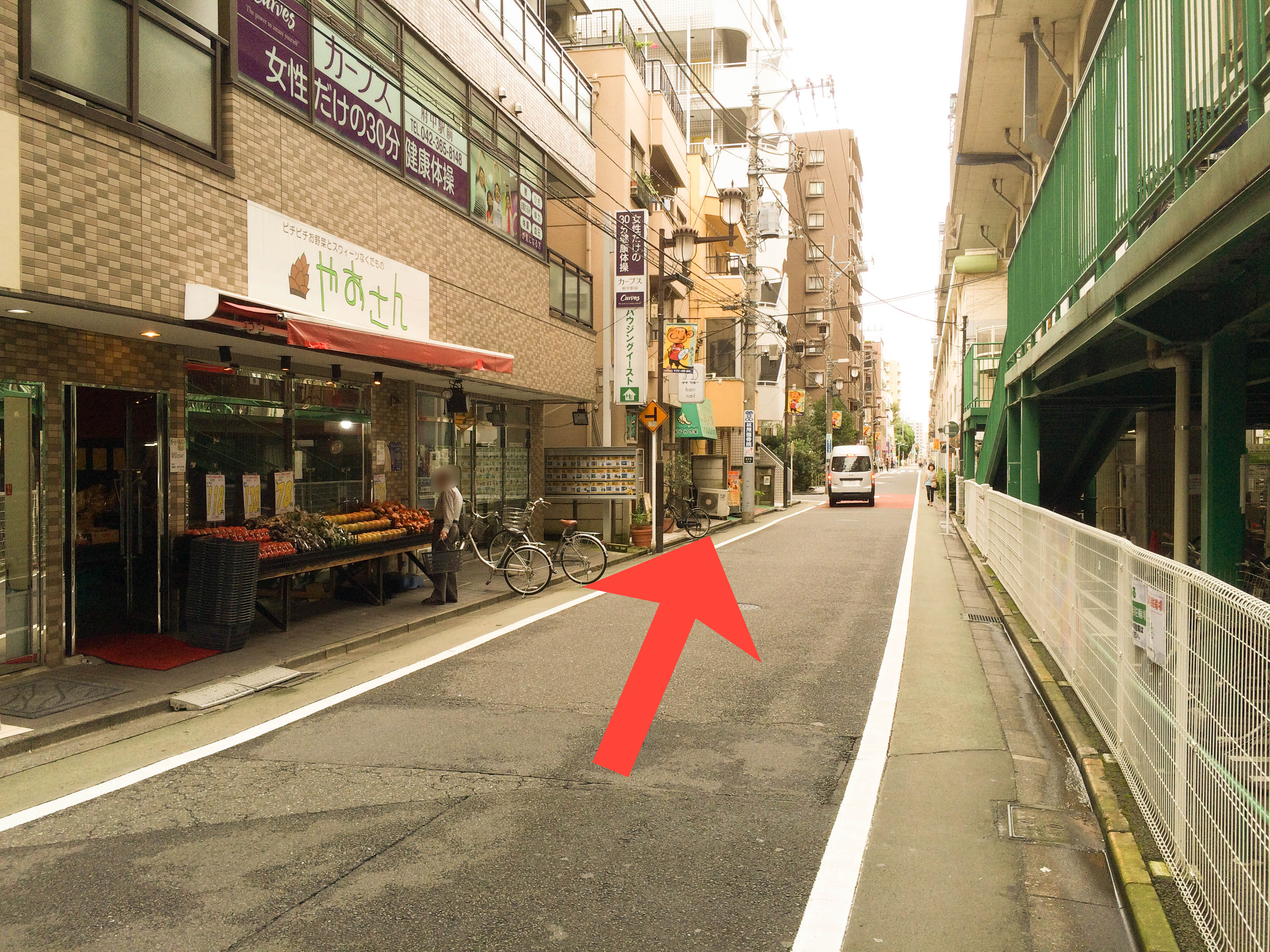 左側に八百屋さんが見えたらもう少し!