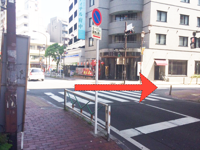 府中駅の南口改札を出て右側(売店があります)に進みます。